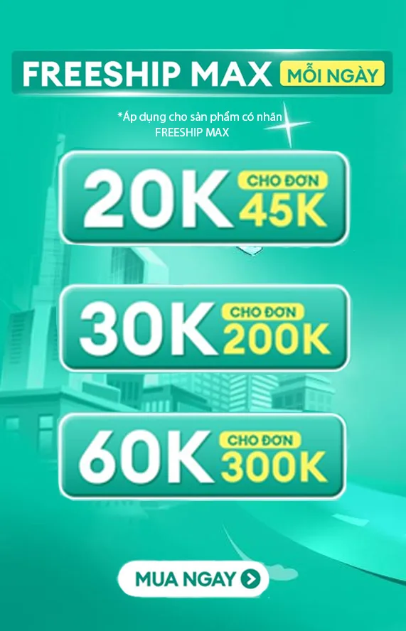 Sử dụng mã hỗ trợ phí vận chuyển (tối đa 15K) đơn hàng từ 45K và thỏa điều kiện ưu đãi tại Shopee. Đơn vị vận chuyển khả dụng: Nhanh Áp dụng trên ứng dụng Shopee. Mã chỉ được hoàn theo quy định của Shopee. Áp dụng cho một số shop nhất định. Hạn sử dụng 30 ngày kể từ khi lưu mã về ví voucher. Số lượt sử dụng có hạn, chương trình và mã có thể kết thúc khi hết lượt ưu đãi hoặc khi hết hạn ưu đãi, tuỳ điều kiện nào đến trước.